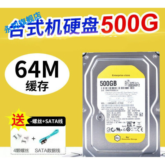 DCOUD高品质同款台式机械硬盘500GB/1TB/2T/3T监控硬盘二手电脑扩容SATA串口3.5 西数500金盘64m 空盘电脑扩容分区