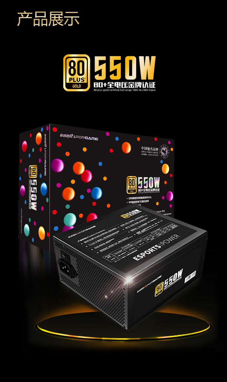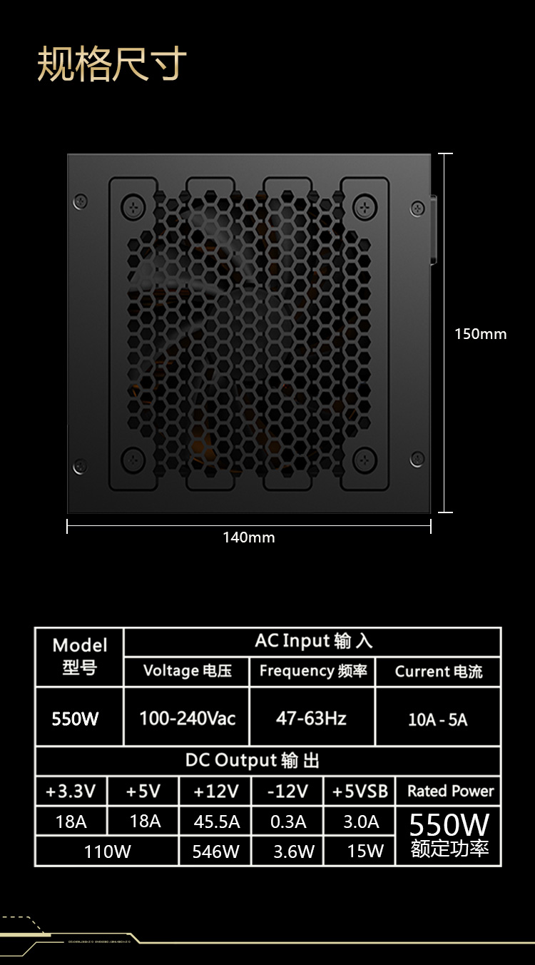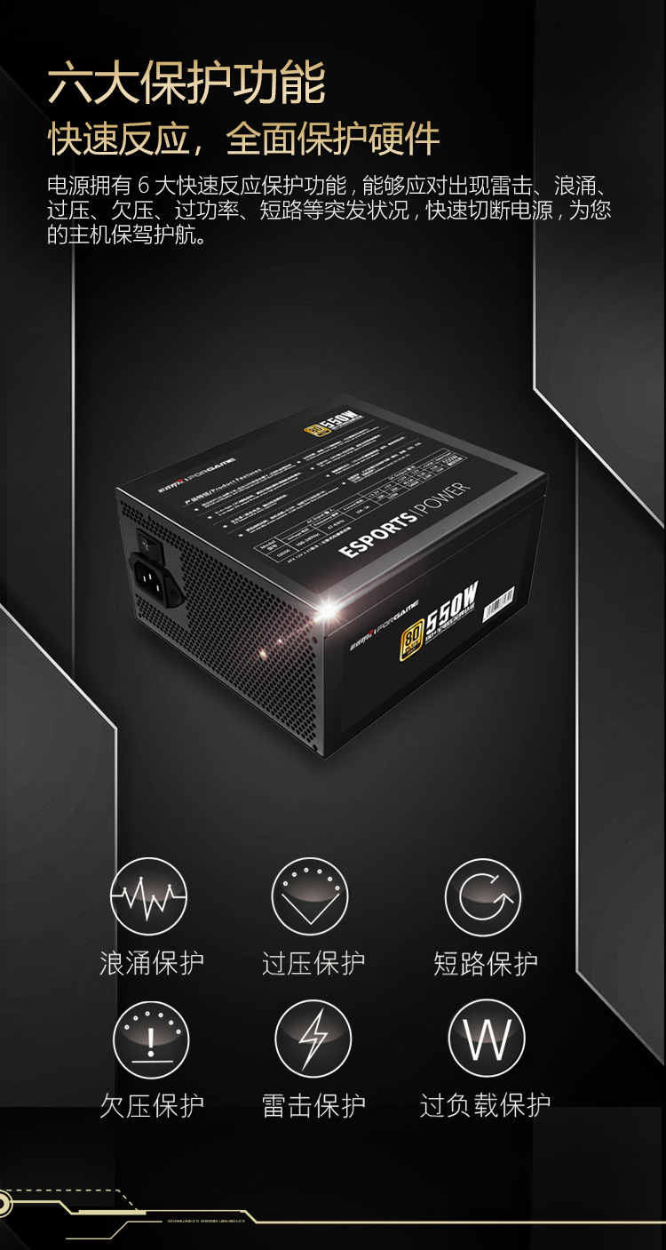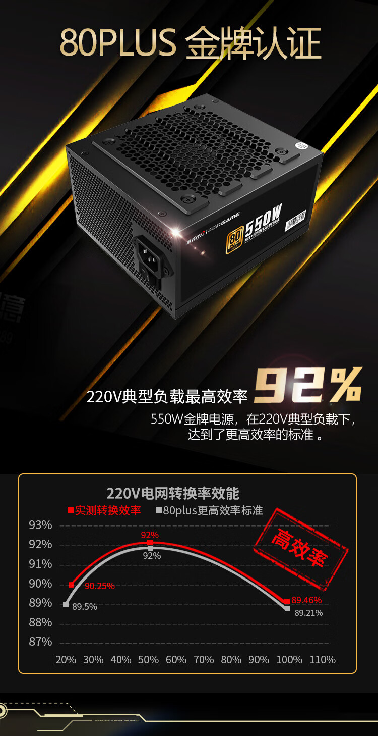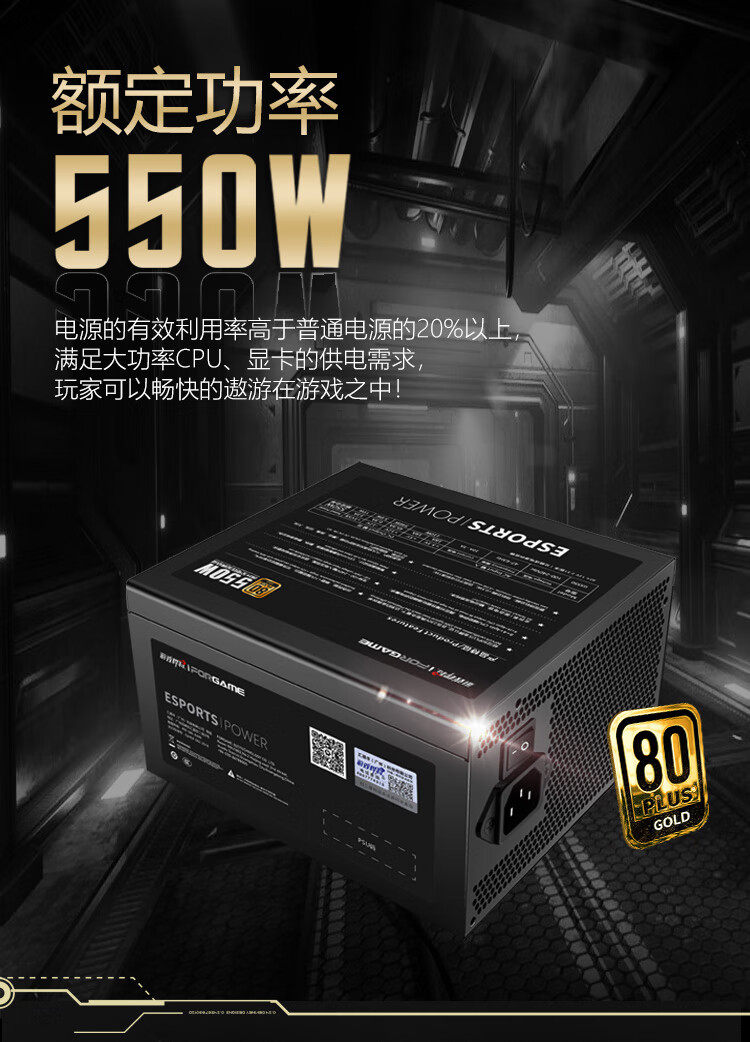 游戏悍将 金牌电源GX550 额定550W 台式机电脑机箱电源(80PLUS/固态电容DC-DC/台系电容/智能温控)