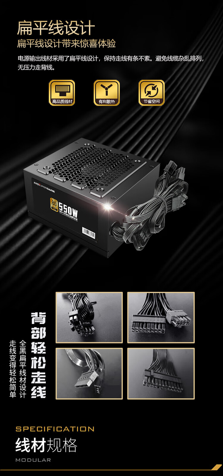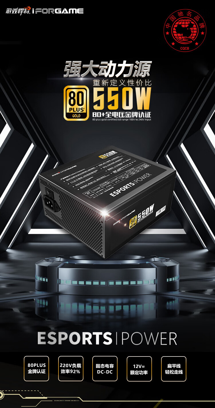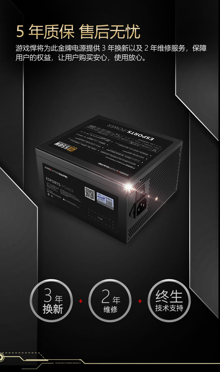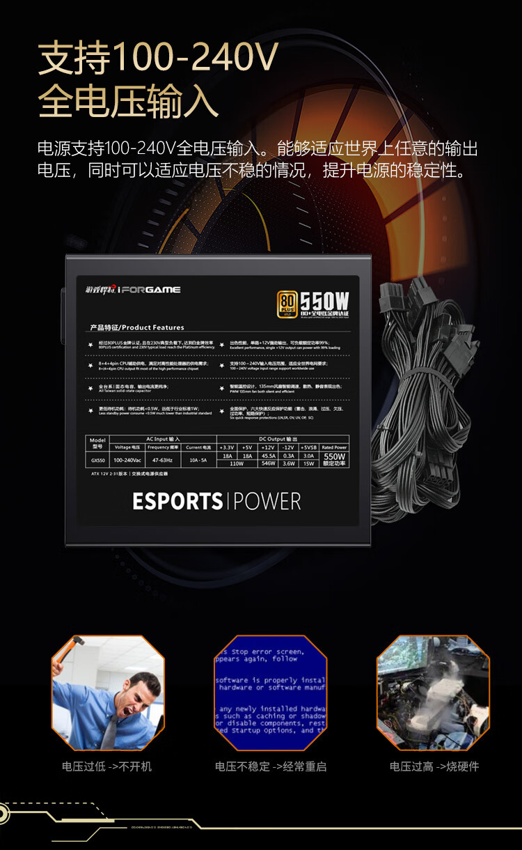 游戏悍将 金牌电源GX550 额定550W 台式机电脑机箱电源(80PLUS/固态电容DC-DC/台系电容/智能温控)