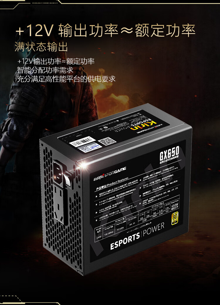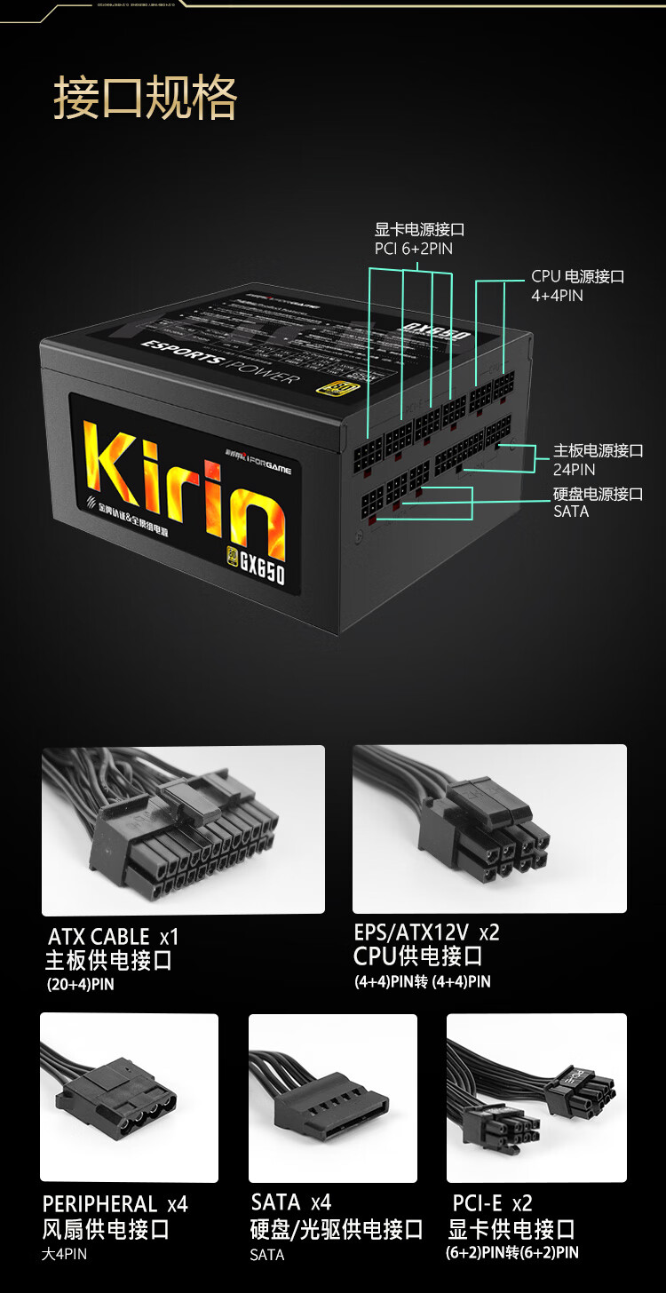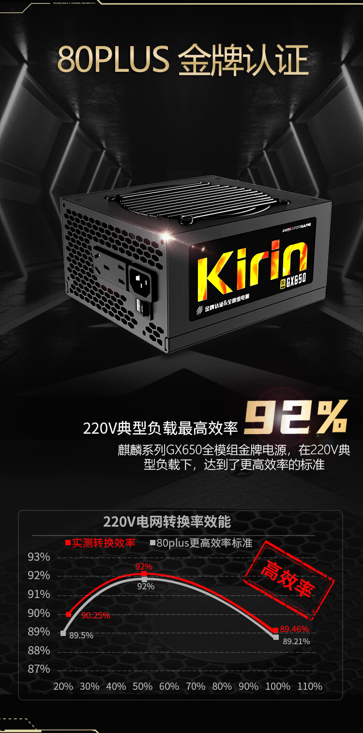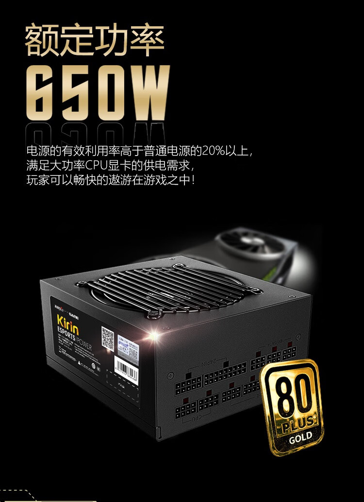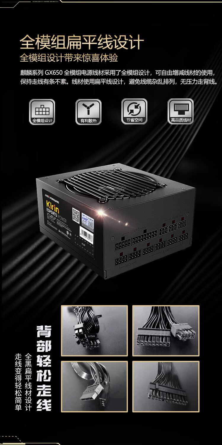 游戏悍将 麒麟GX650 额定650W 金牌全模组电源 台式机电脑电源(80PLUS/全台系电容/DC-DC/全电压)