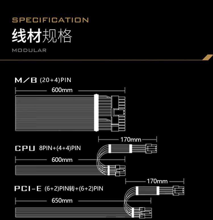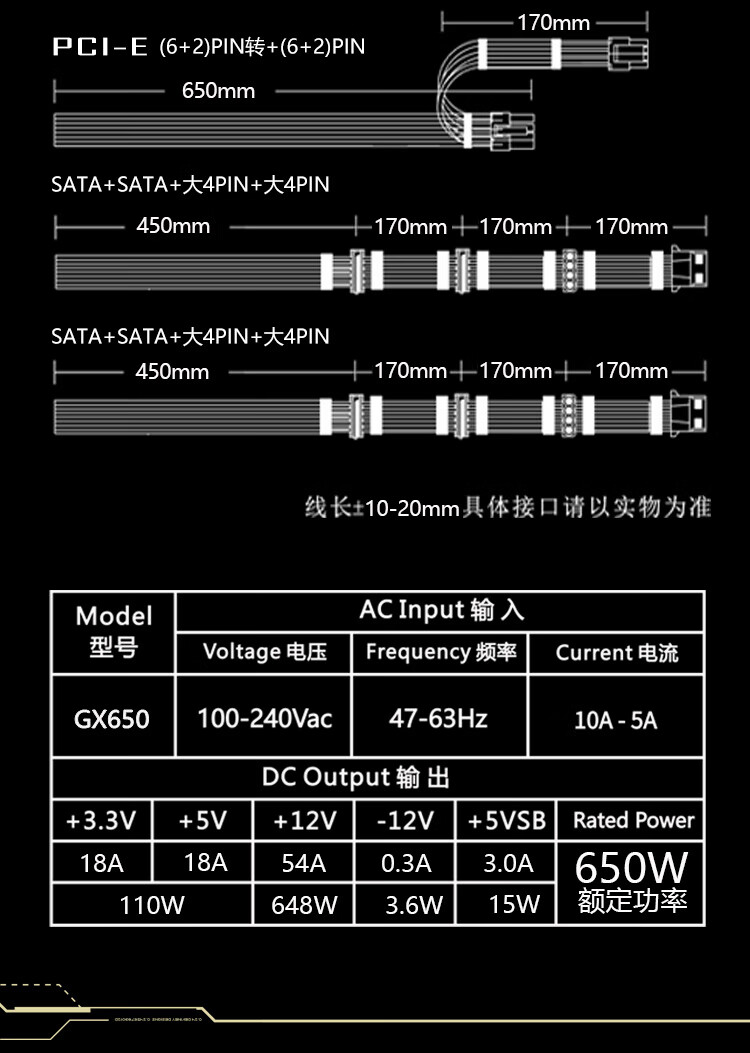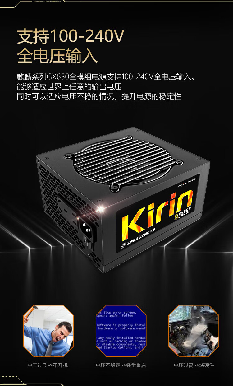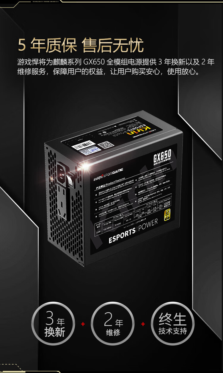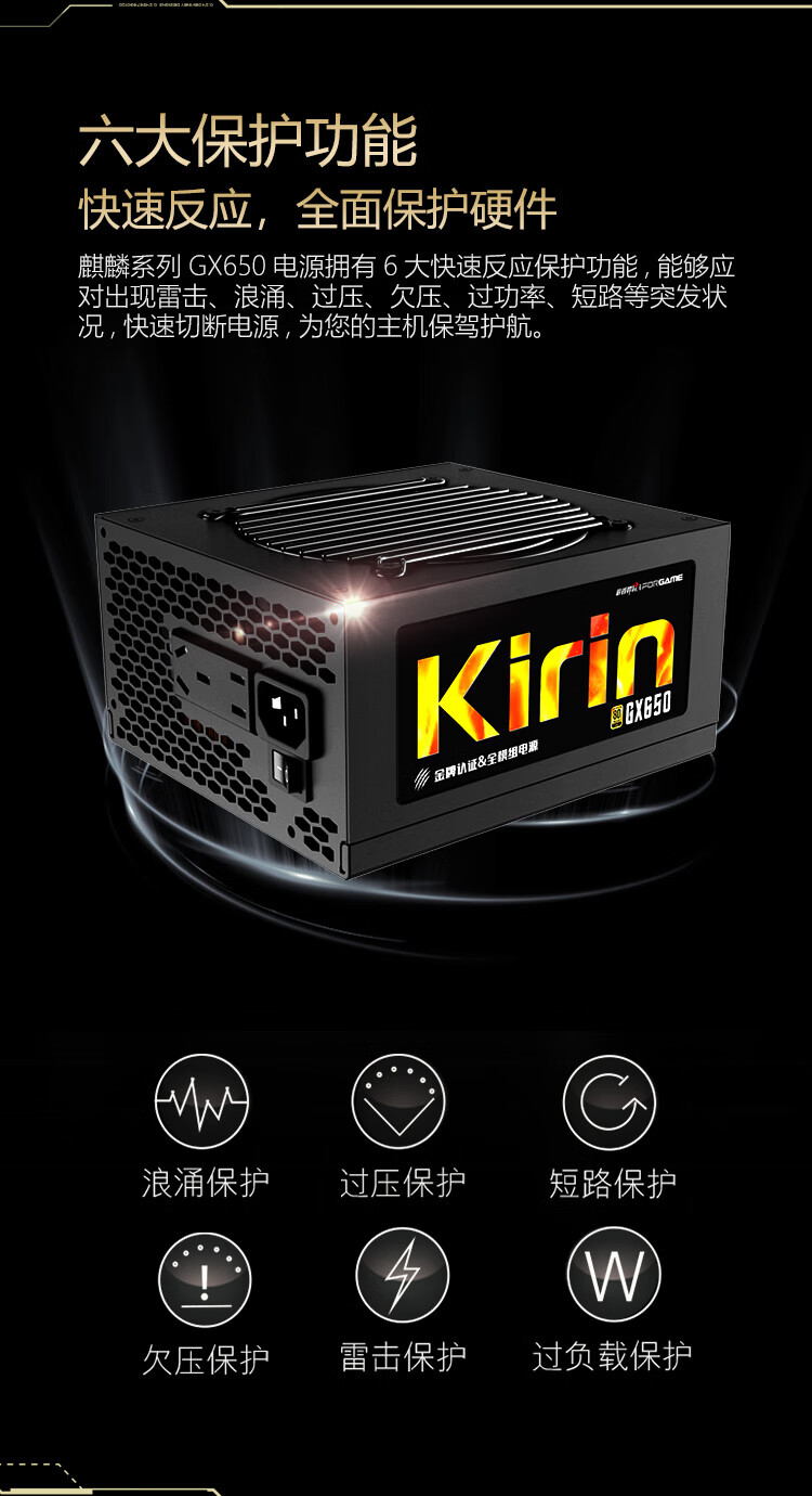 游戏悍将 麒麟GX650 额定650W 金牌全模组电源 台式机电脑电源(80PLUS/全台系电容/DC-DC/全电压)