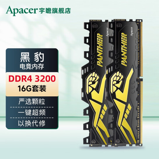 宇瞻(Apacer) 黑豹DDR4 8G 16G 2666 3200 3600 台式机电脑内存条 黑豹3200马甲条 8G*2