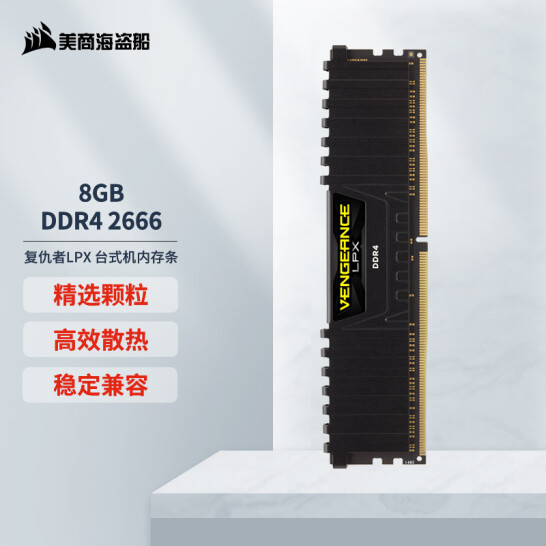 美商海盗船(USCORSAIR) 8GB DDR4 2666 台式机内存条 复仇者LPX系列 游戏型