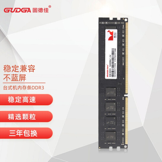 固德佳(GUDGA) 台式机DDR3内存条 单条原厂颗粒内存 三年包换 稳定不蓝屏 【台式机DDR3 1600】 单条4G