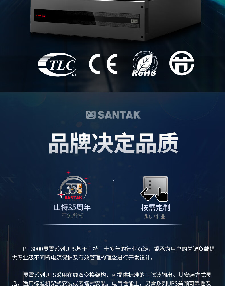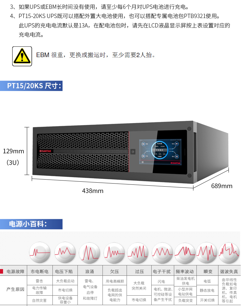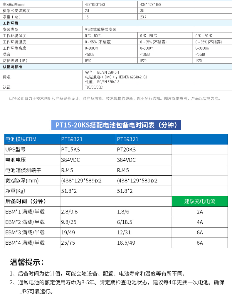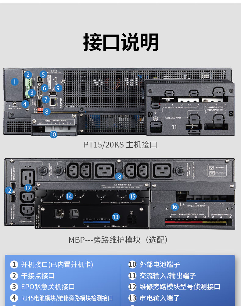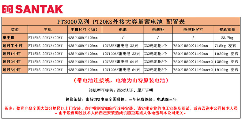 山特(SANTAK)PT3000UPS不间断电源PT20KS/20KW机架式网络服务器机房断电续航 PT20KS 单主机(兼容三相及单相输入输出)