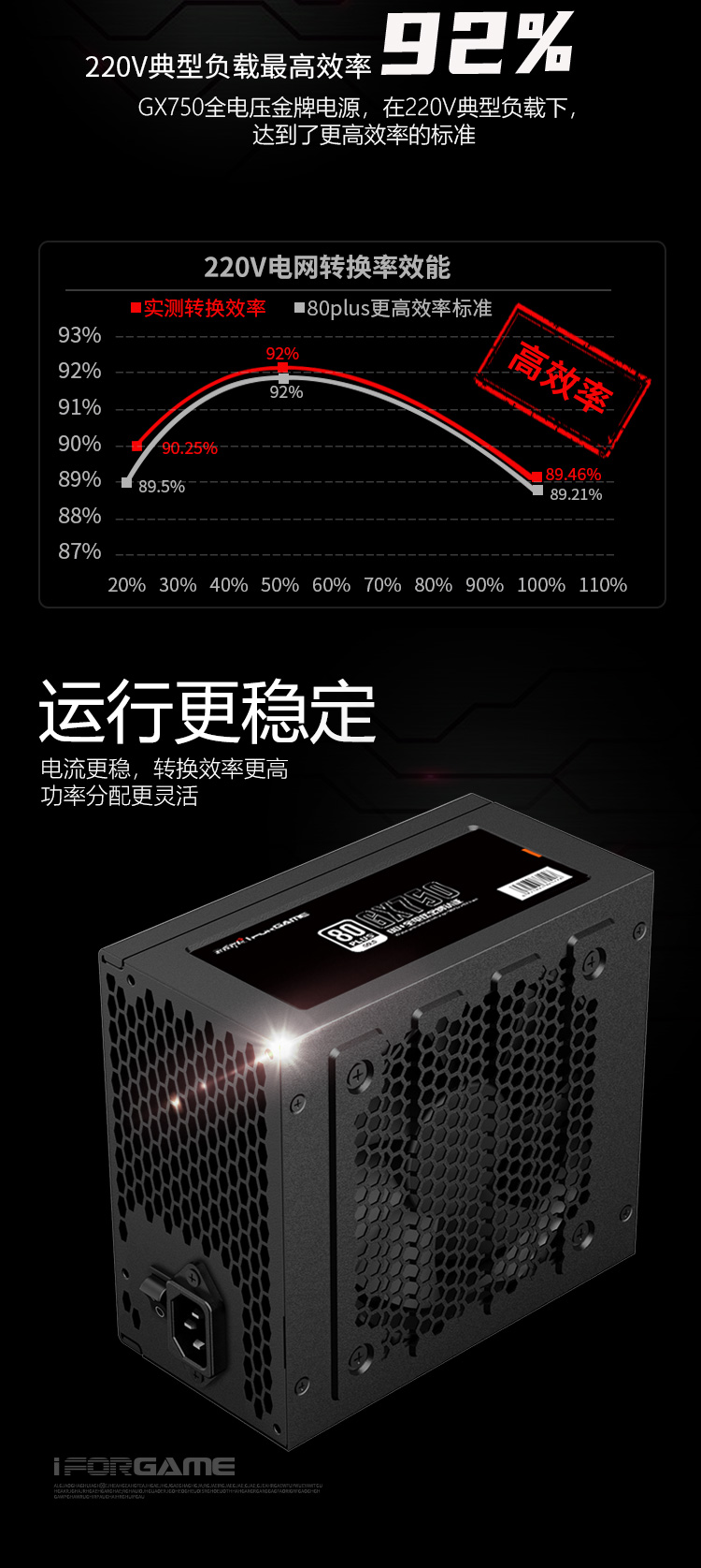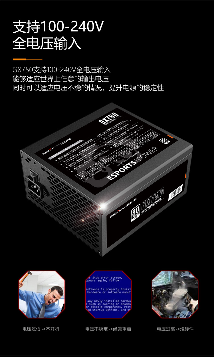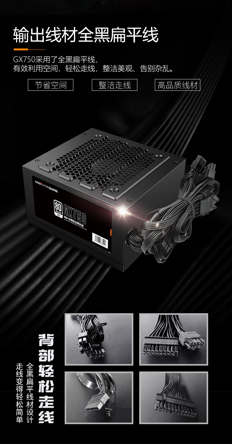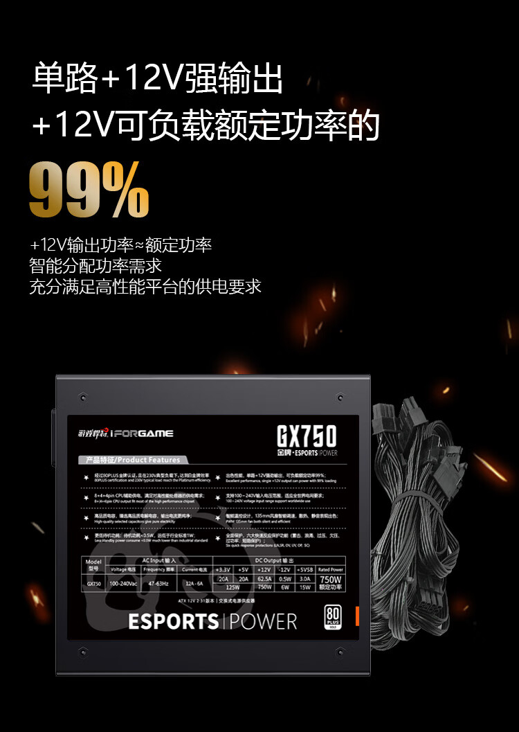游戏悍将 熊猫GX750 额定750W 金牌电源 台式机电脑机箱电源(80PLUS/固态电容DC-DC/双路CPU供电/智能温控)