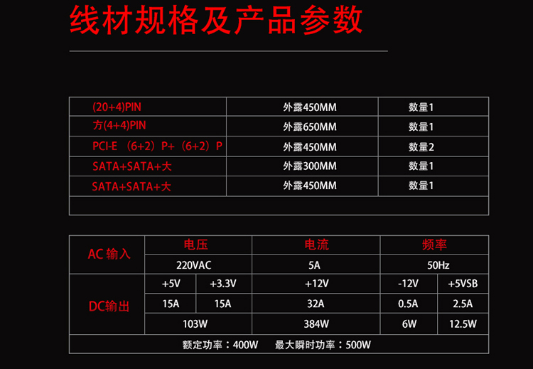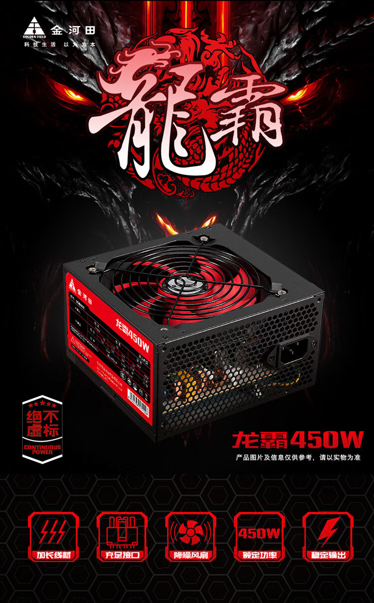 金河田(Golden field)额定400W 龙霸400台式电脑电源(ATX/双倍铜/游戏稳定/三年质保)
