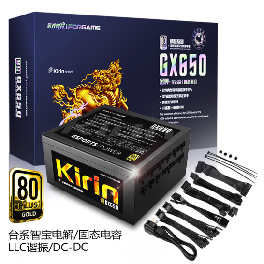 游戏悍将 麒麟GX650 额定650W 金牌全模组电源 台式机电脑电源(80PLUS/全台系电容/DC-DC/全电压)
