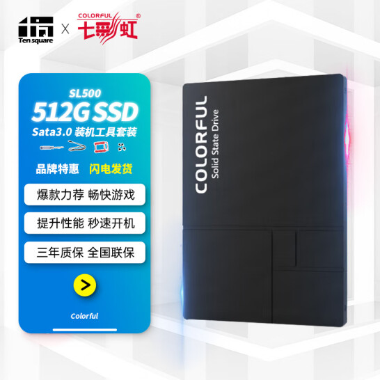 七彩虹(Colorful) SATA3.0接口 SSD台式笔记本电脑高速固态硬盘 SL500系列 SL500 512G+装机配件