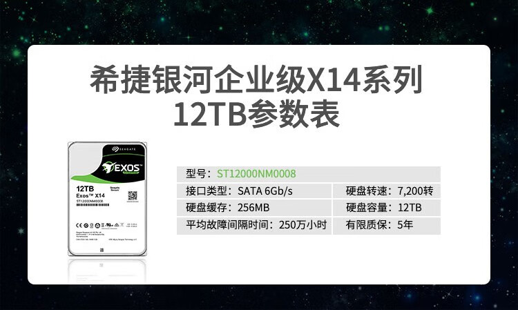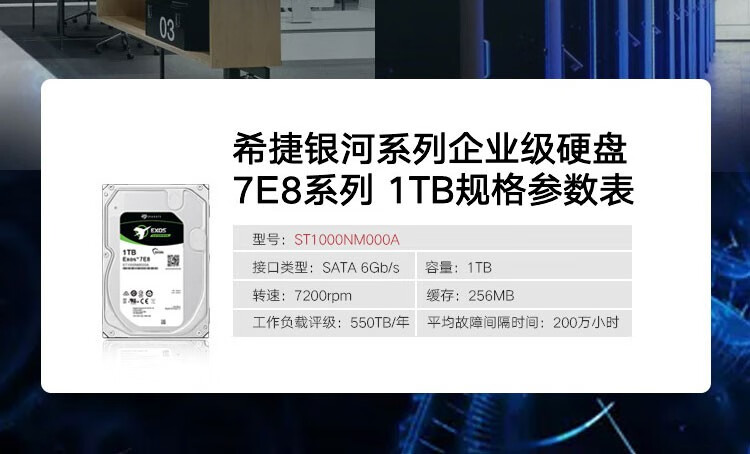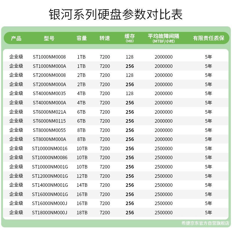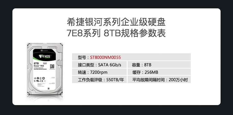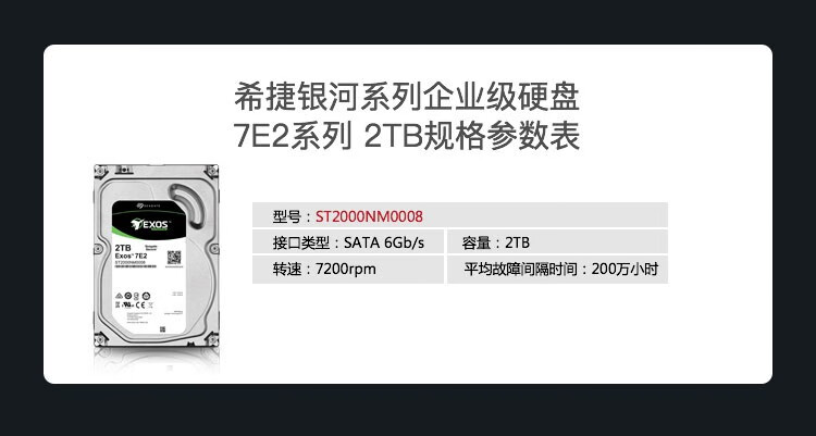 希捷(SEAGATE) 7200 企业级台式机硬盘SATA接口 银河系列 机械硬盘 企业存储 2T(ST2000NM000A)