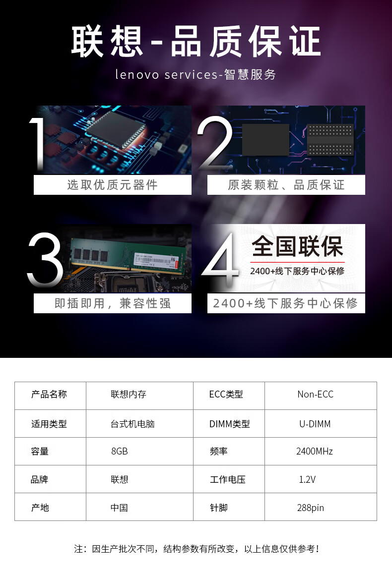 联想(Lenovo)8GB DDR4 2400 台式机内存条
