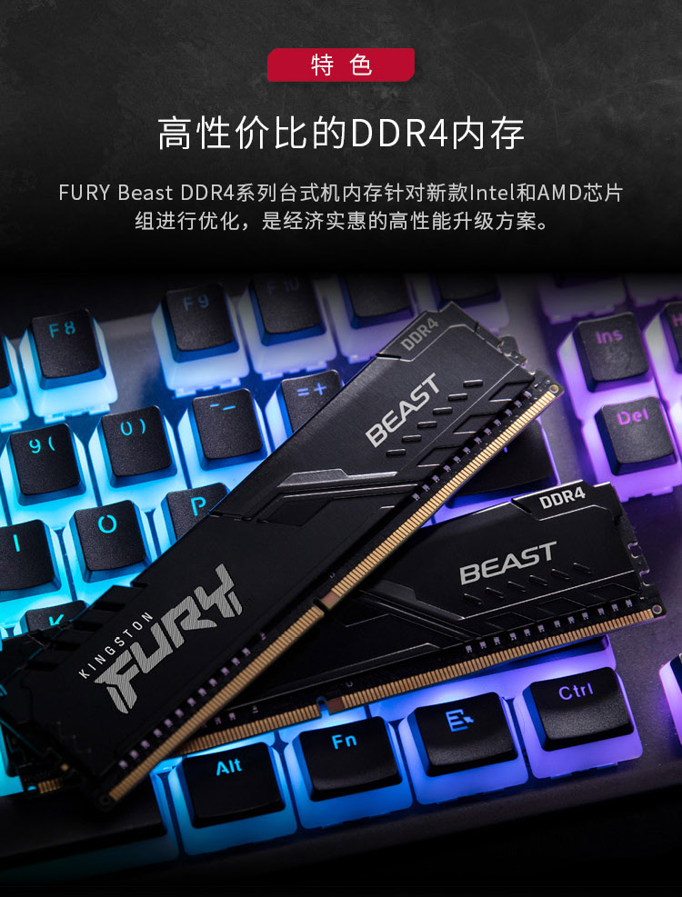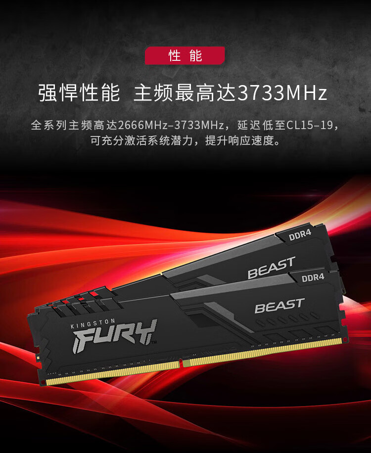 金士顿 (Kingston) FURY 16GB DDR4 3600 台式机内存条 Beast野兽系列 骇客神条